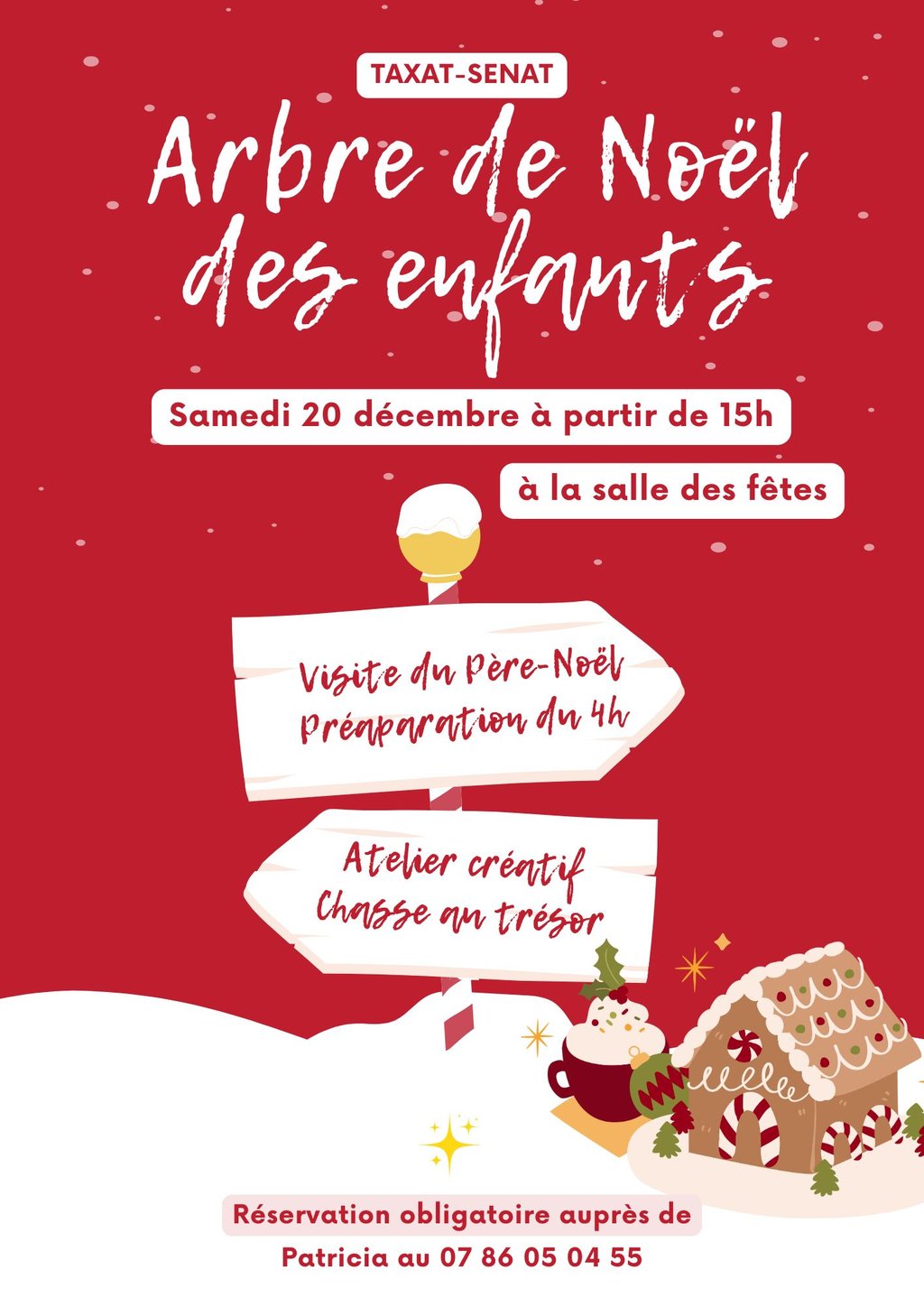 La commune invite tous les enfants de Taxat-Senat à l'arbre de Noël le samedi 20 décembre à partir de 15 h à la salle polyvalente.