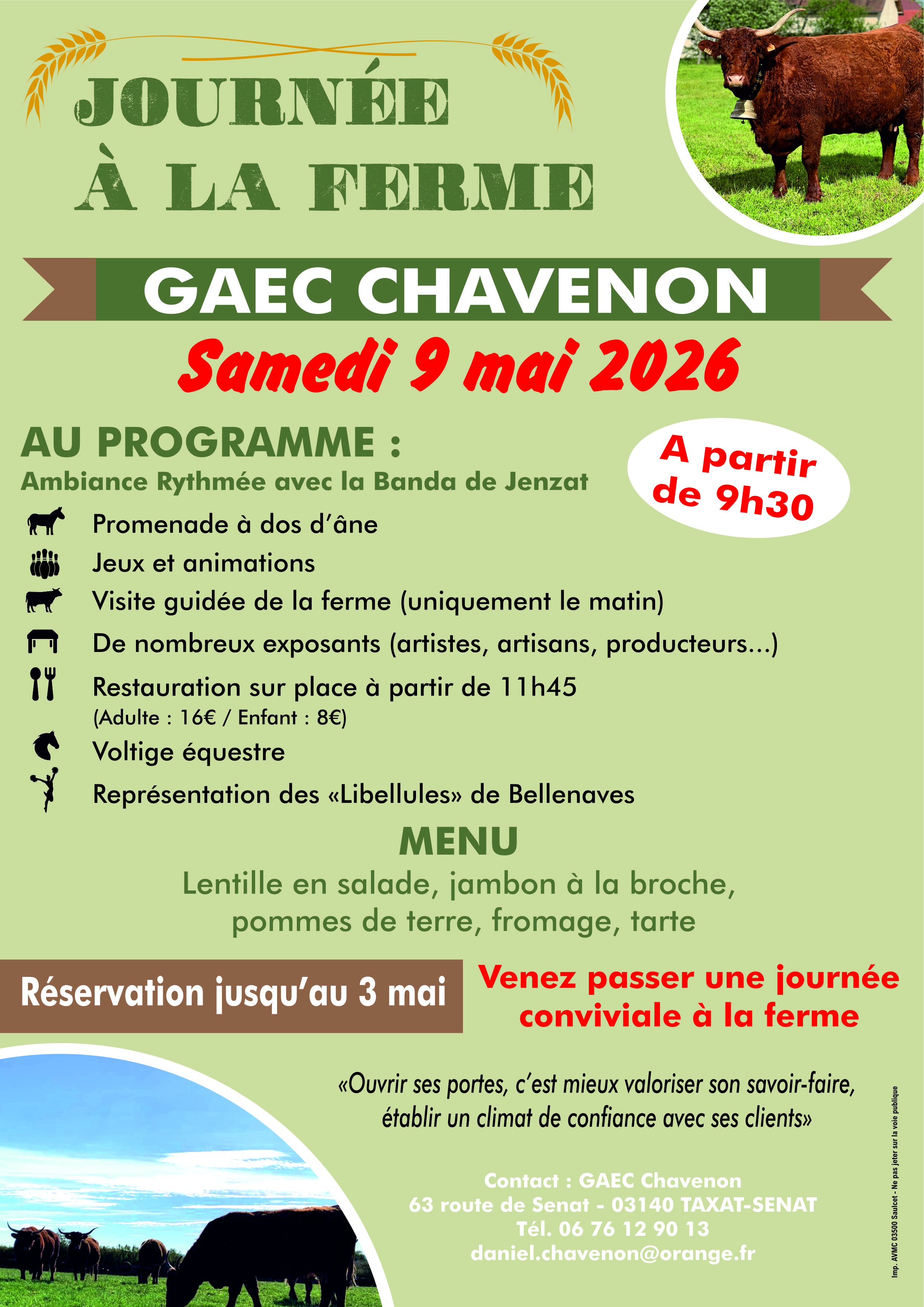 Le GAEC CHAVENON vous propose une journée à la ferme le samedi 9 mai à partir de 9 h 30.
